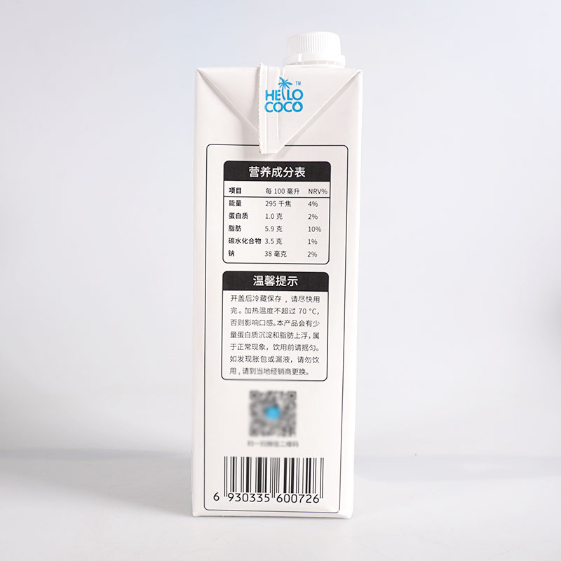 Hello coconut milk 1L*12 bottles of Hello COCO cold pressed coconut milk raw coconut grain