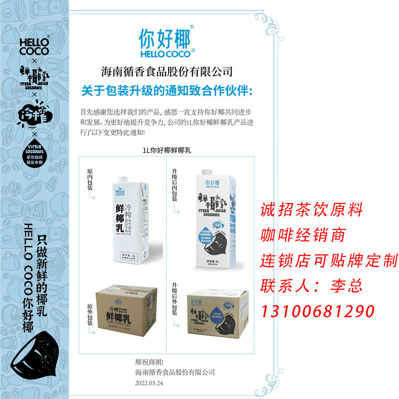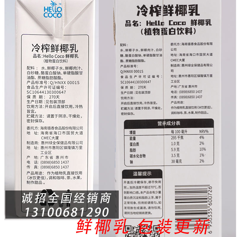 hello coco Fresh coconut milk 1L*12 bottles of cheerful recruitment agent