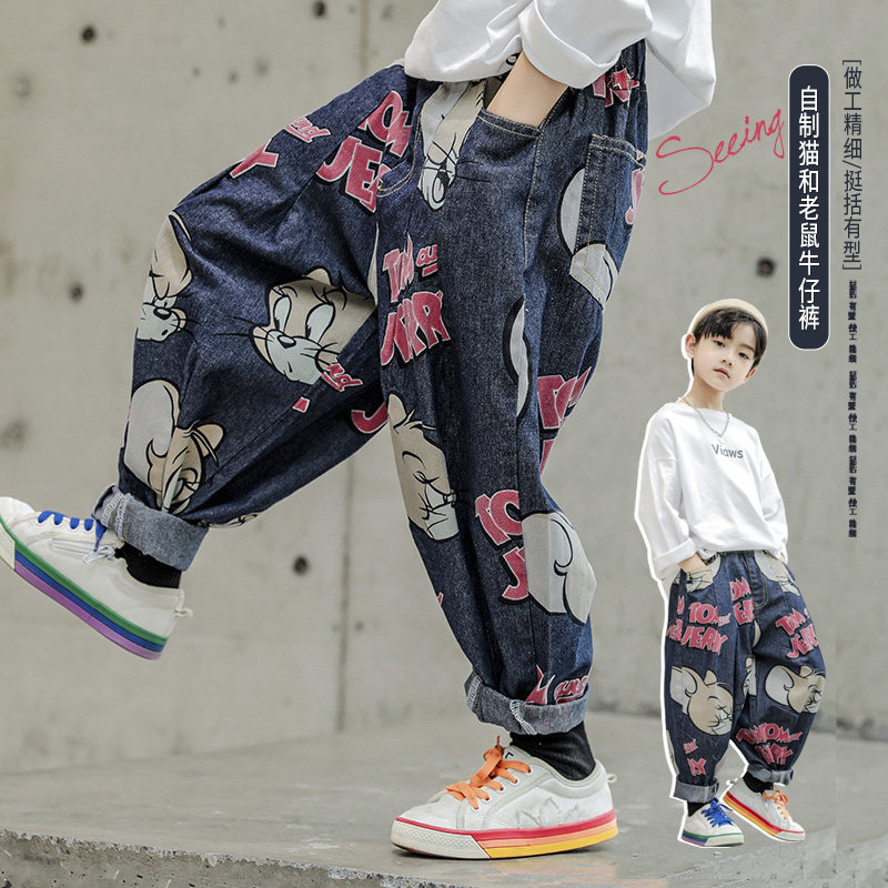 Boy jeans 2022 Spring autumn new cartoon easing CUHK Tong Harun Pants Fashion Boy Casual Long Pants Tide