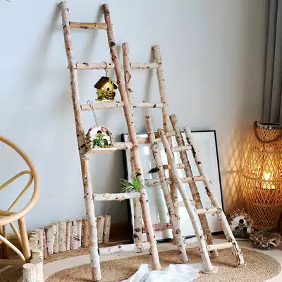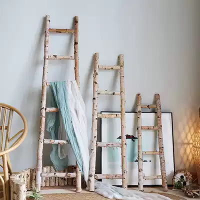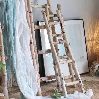 Birch decorative wooden ladder against the wall ornaments shooting props window display garden courtyard floor storage rack