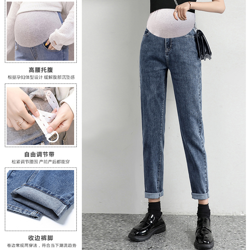 Pregnant Woman Jeans Woman 2022 Autumn Winter New Wearing Loose Tide Moms Small Sub tall and large size Old Daddy Straight-Straight Pants