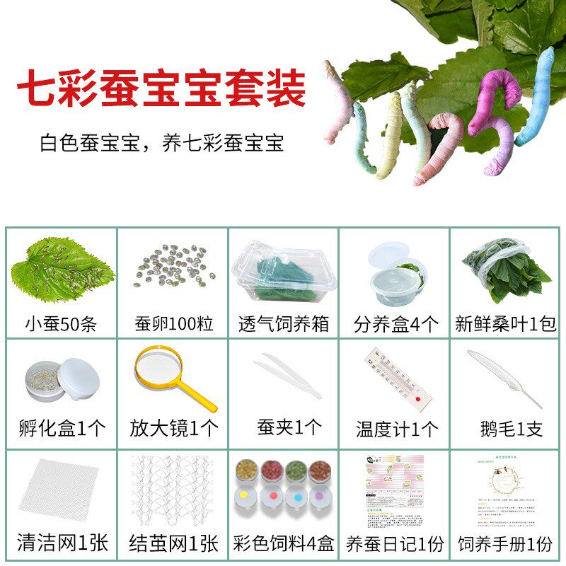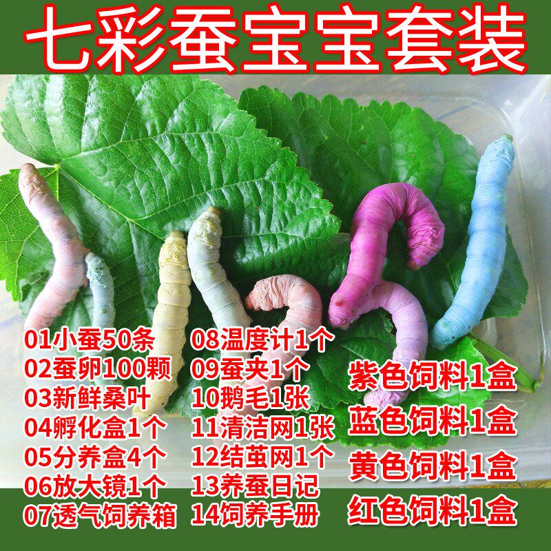 Seven-coloured silkworm baby suit Seven colorful silkworm baby suit fresh mulberry leaf one catty of colorful silkworm baby suit portable rearing box A seven colorful silkworm baby suit 50 strips of natural small silkworm big number luxury rearing box suit
