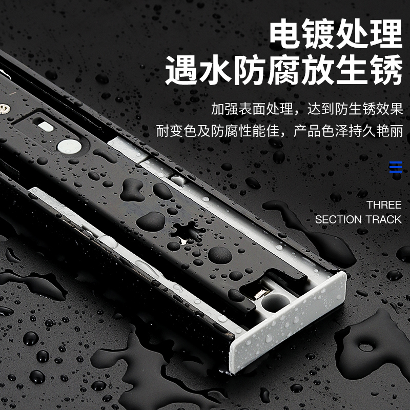 Star emblem SH-ABC thickened black three-section rail 45 wide track drawer slide rail buffer damping mute rail