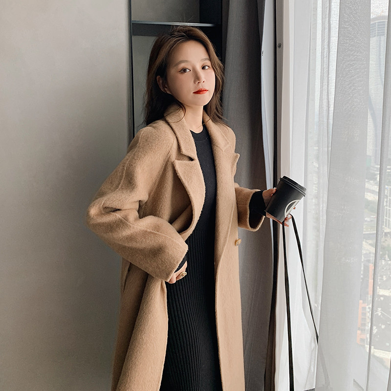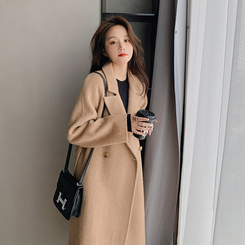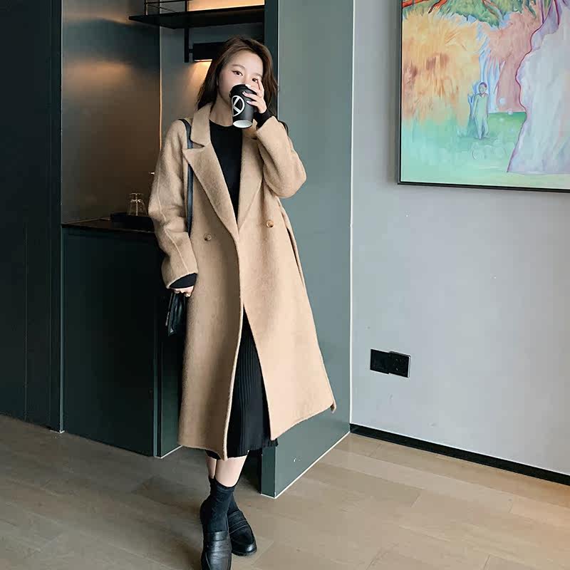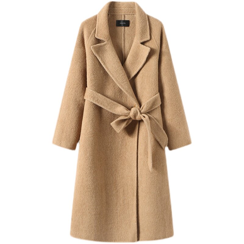Autumn Winter New Bifacial Cashmere Big Coat Woman Medium Long Version Wool High-end Camel Color and Hooch Fur Coats