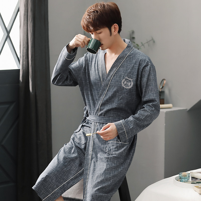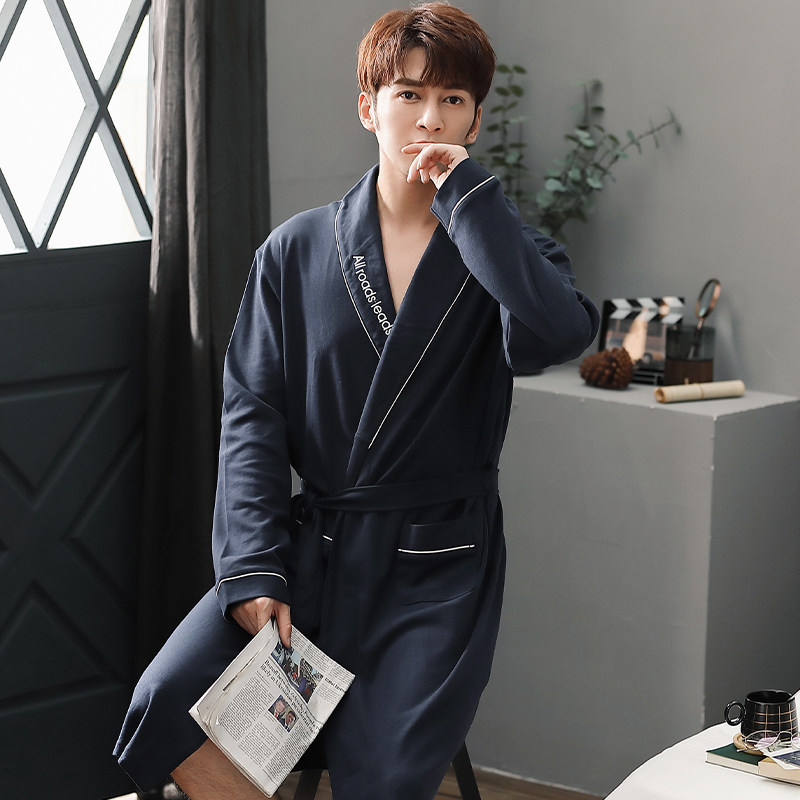 Sleeping Robe Men's Spring Autumn Season Pure Cotton Long Sleeves 2021 New Medium Long Version Bathrobe Fall Full Cotton Increase Yard pyjamas winter