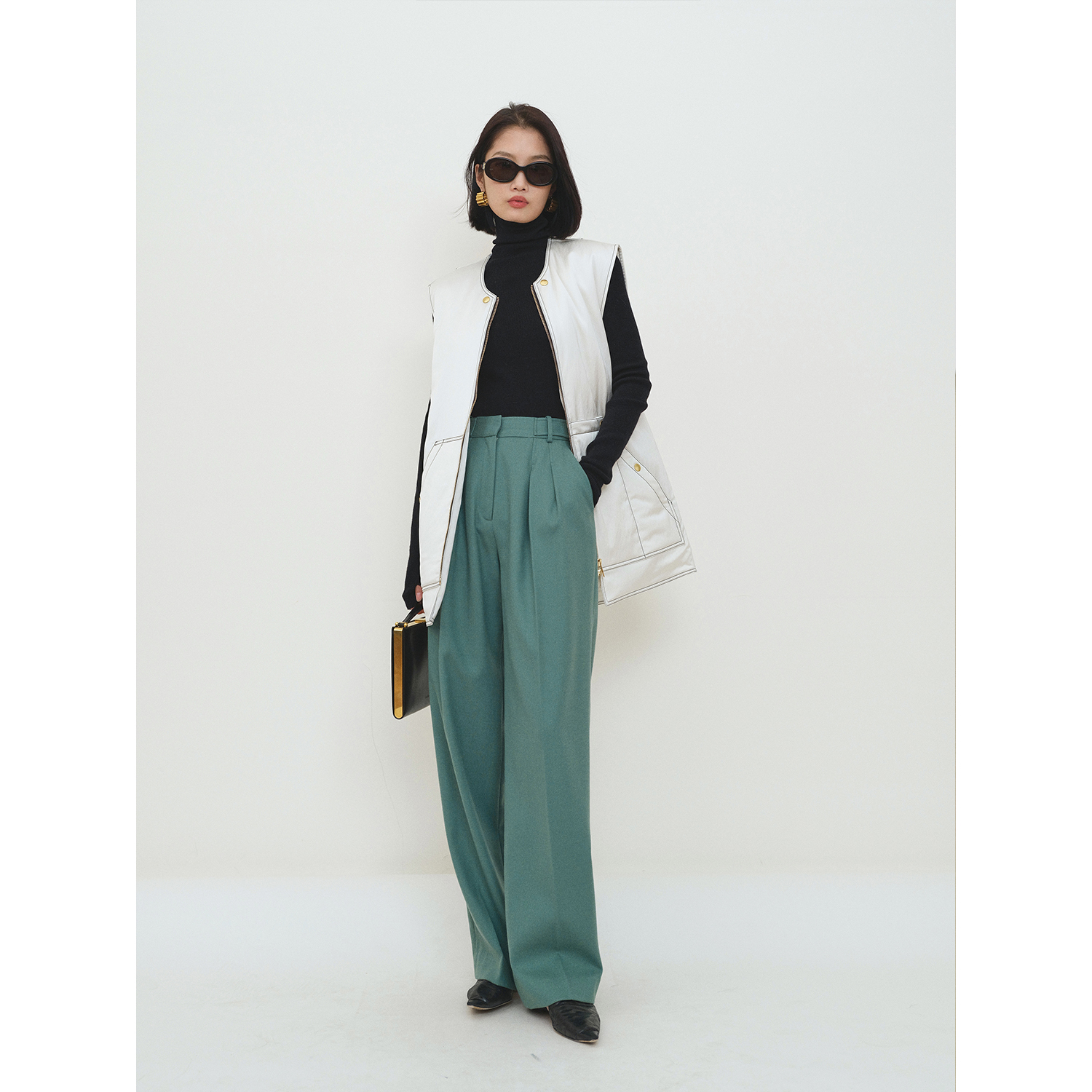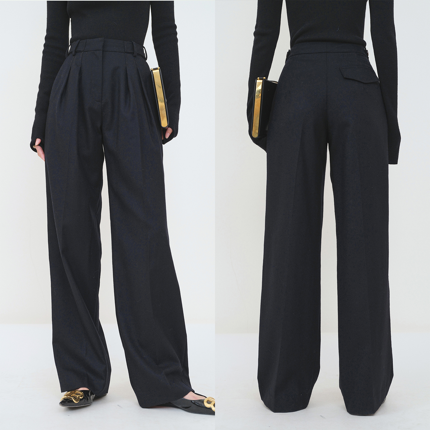 MRS Studios autumn winter Bi into waist buckle loop design High waist wool and ground Western pants casual pants