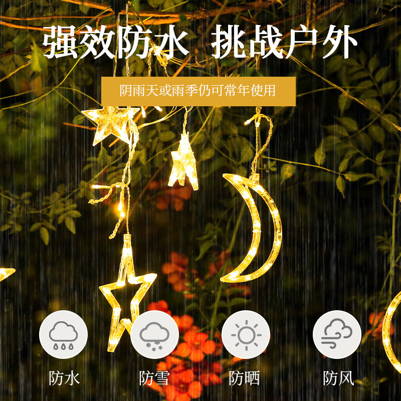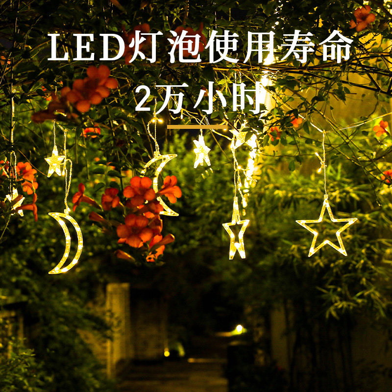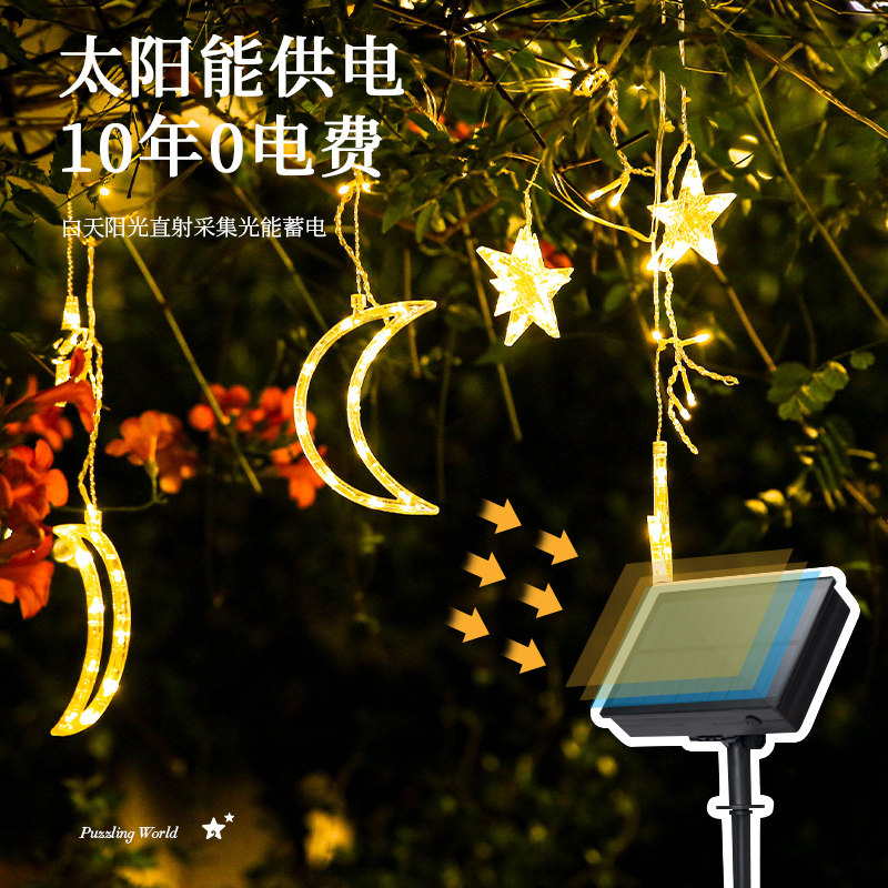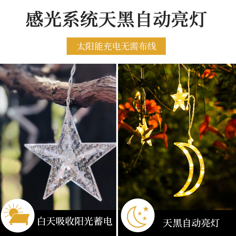 Solar outdoor courtyard lightstar moon waterproof lamp balcony layout garden decoration LED color lights string camping