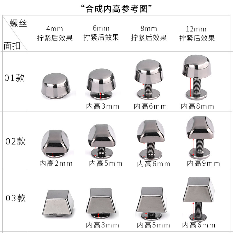 Bag wrap fixed screw buckle rivet metal button pin round screw buckle Sub-belt decorative screw cap accessories Women
