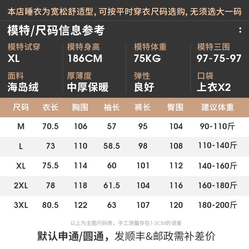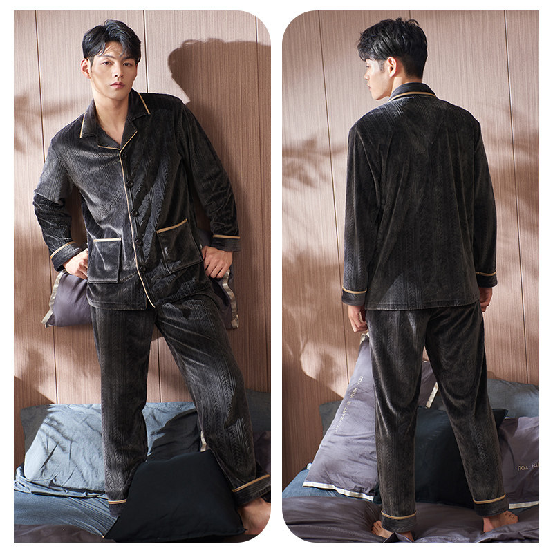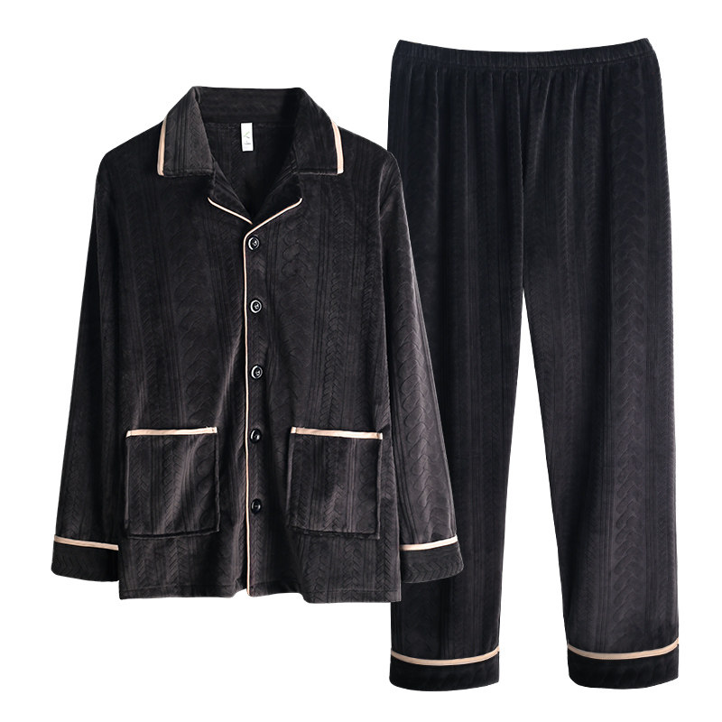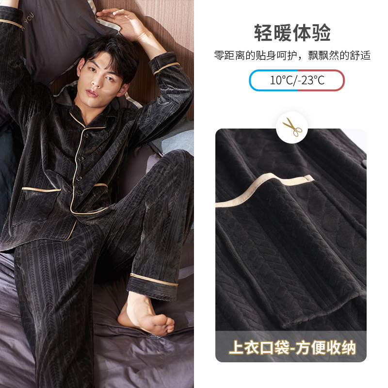 Nightwear men's autumn winter autumn long sleeve warm plus thick coral velvet island velvet loungewear large size loose suit