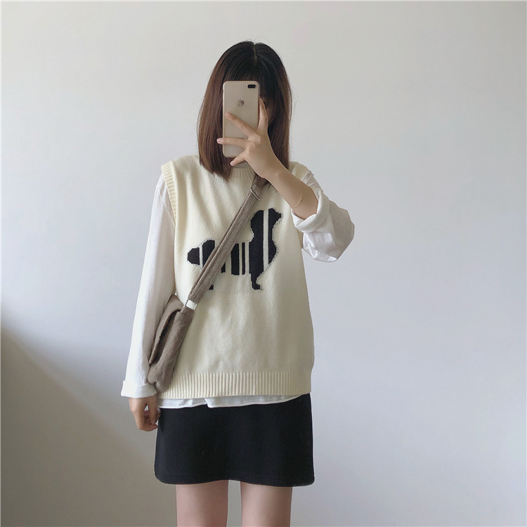 Japan SLY2021 autumn puppies jacquard embroidery casual 100 hitch sleeveless knitted vest sweater waistcoat