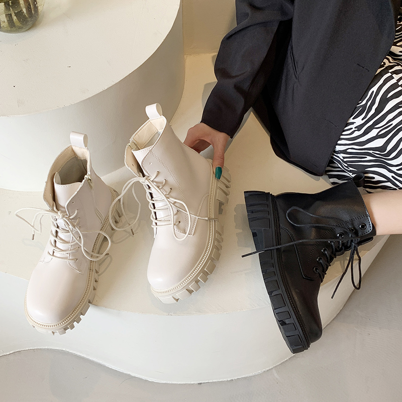 White Martin boots women's 2021 new women's spring and autumn thick bottom British style retro single boots black short boots