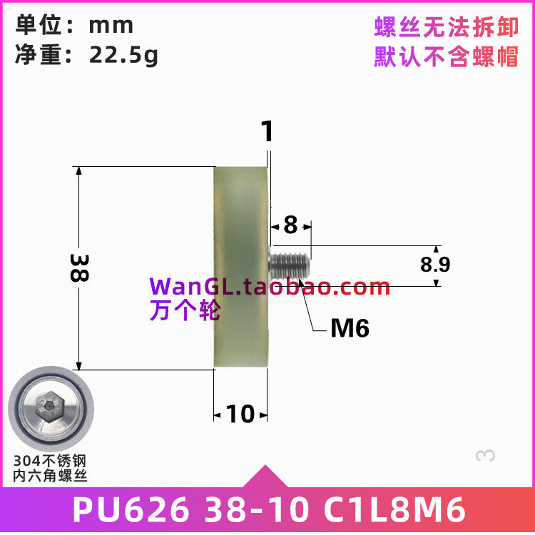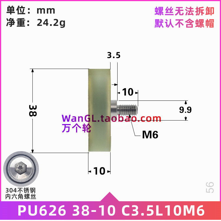626 bearings coated rubber pulley polyurethane rolling soft glue mute 4 cm diameter conveyor belt press wheel 6 * 38 * 10