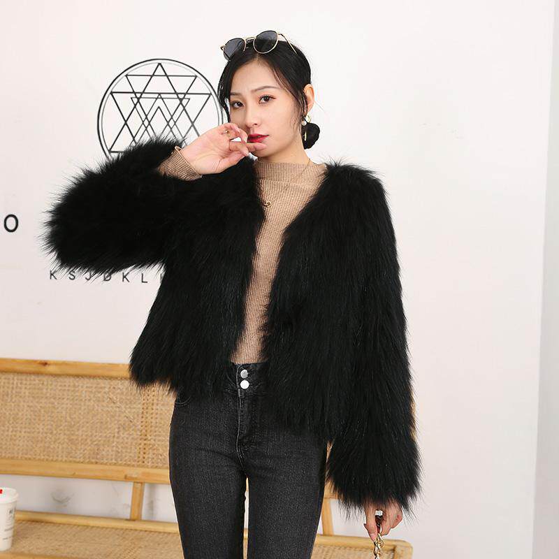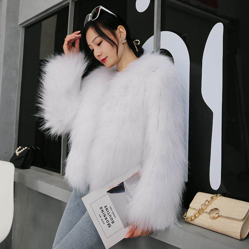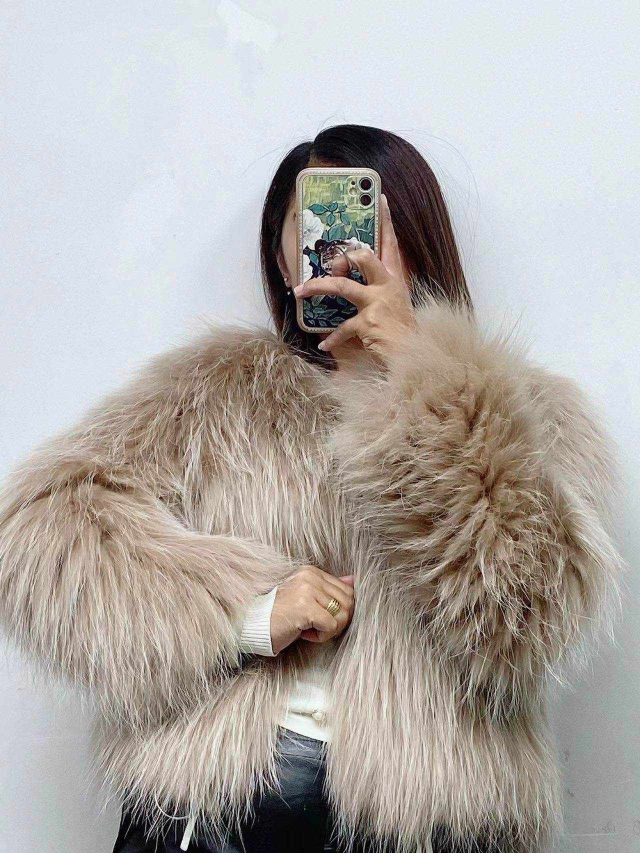 2022 Haining imported whole leather raccoon hair double-sided woven fur women's coat short fashion slimming genuine leather clear