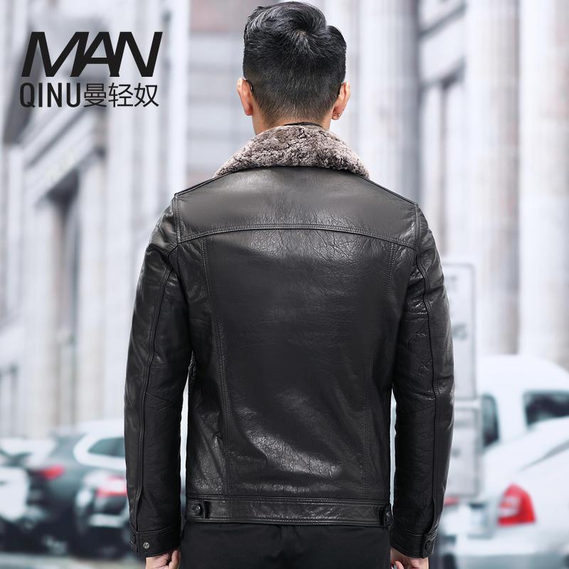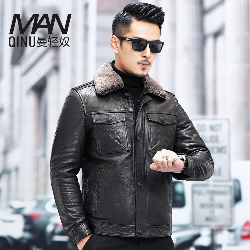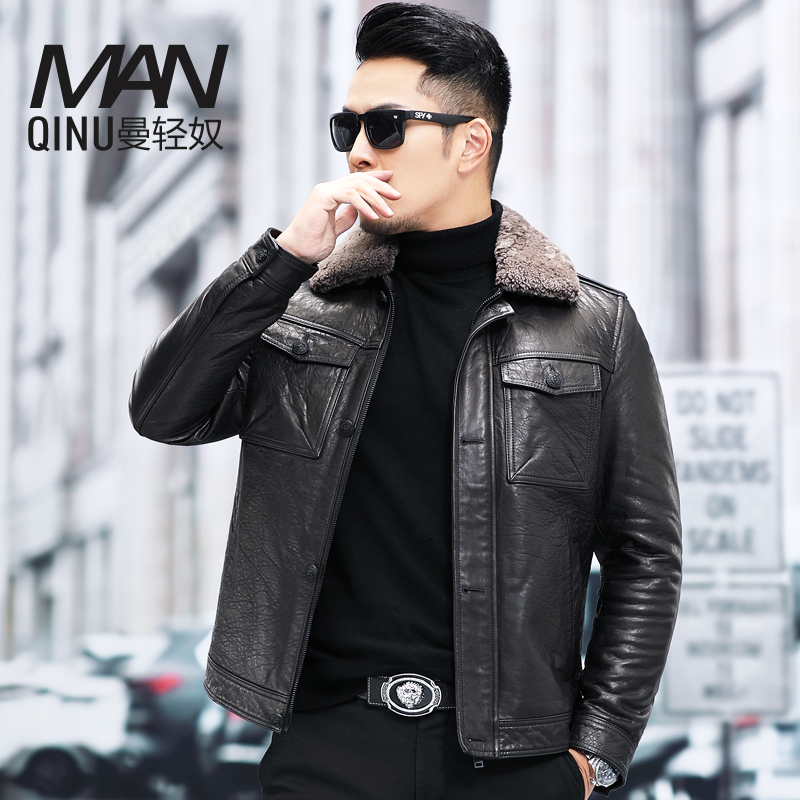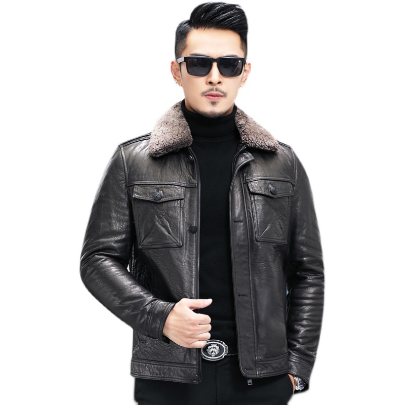 Winter genuine leather clothing for men and cotton lamb wool turd collar short sheep peeler car clothing leather jacket thickened jacket