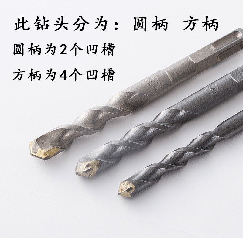 Electric hammer diamond head drill bit to impact the four-pit square handle Two-pit two-groove round handle concrete bore hole electric hammer drill rig