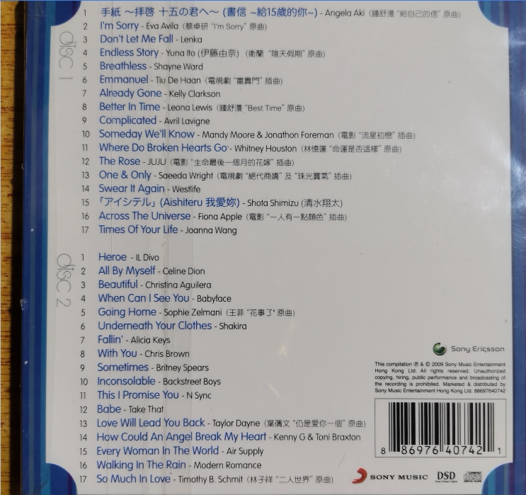 Love Phase Your Love Song Collection PICTURE OF YOU 2009 H Sony Music Limited Edition CD Title :E503