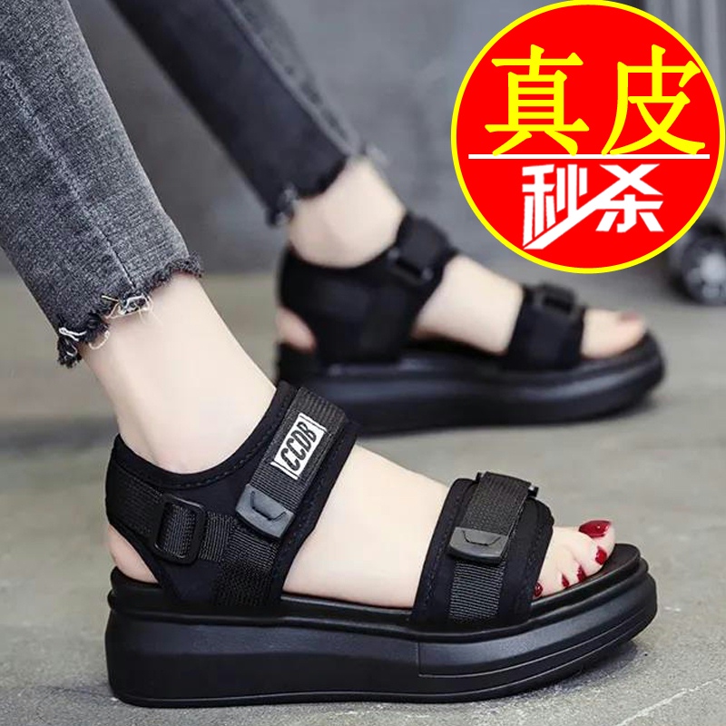 2022 new foot Yierkang leather sponge cake sports sandals women's summer thick bottom flat beach shoes women's shoes