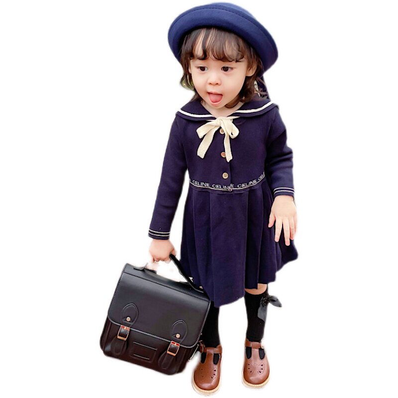 Girl Child Early Autumn Day Children's Clothing Women's Knitted Ocean Dress Butterfly Knot Children's Autumn Dress Dresses Children Princess Dress