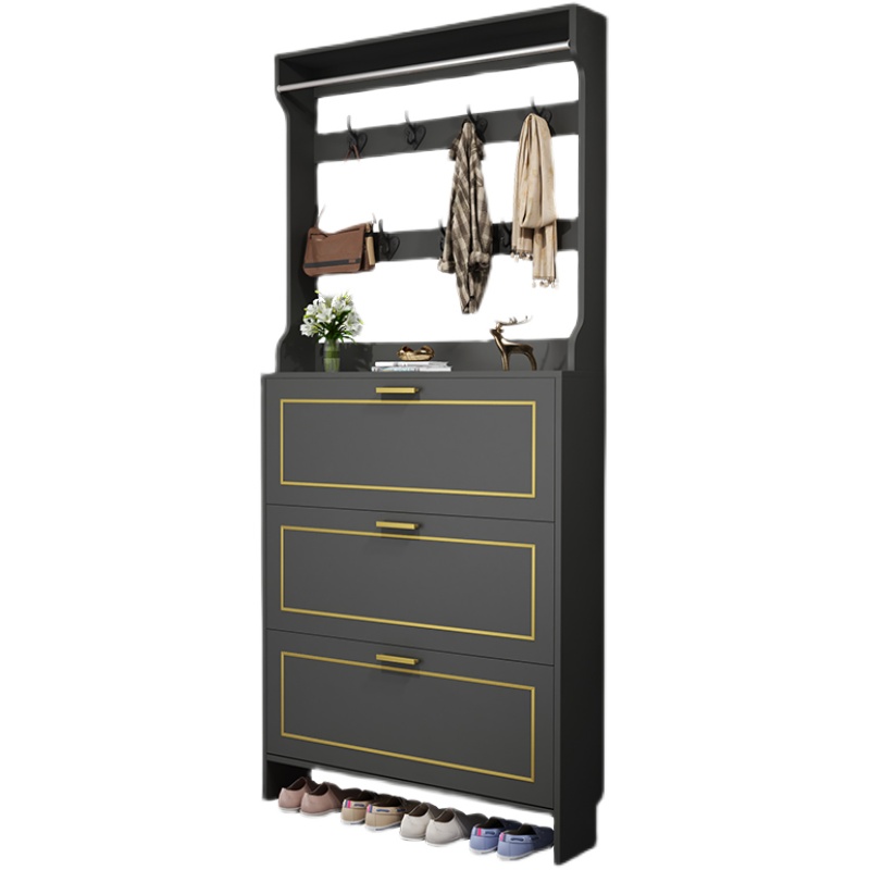 Light luxury tipping shoe cabinet home door ultra-thin large-capacity storage with hanger porch cabinet small apartment storage shoe rack