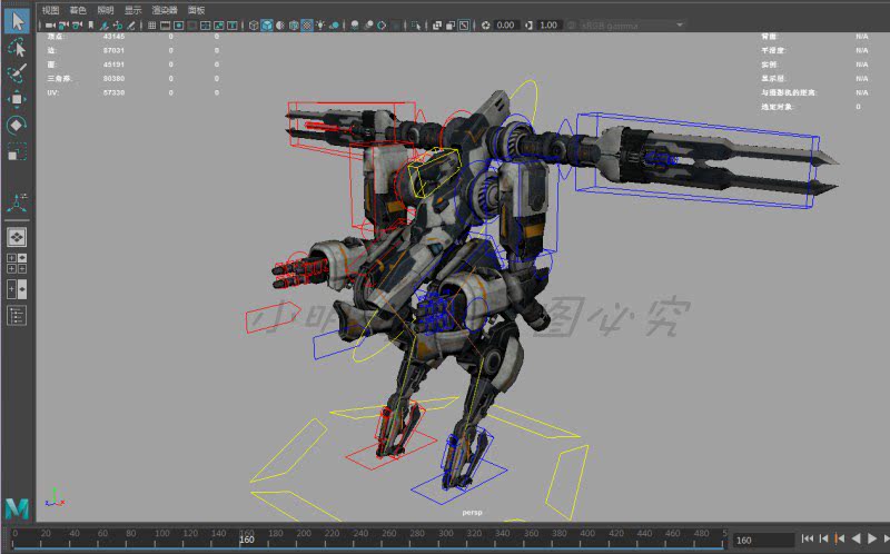 maya robot model source files with skeletal binding can be animated