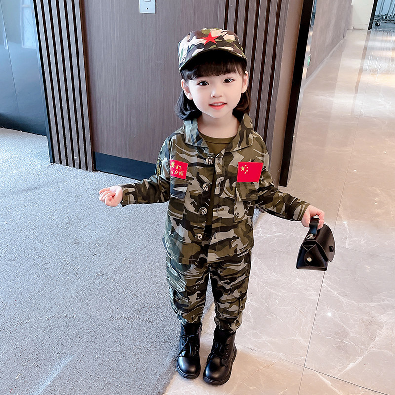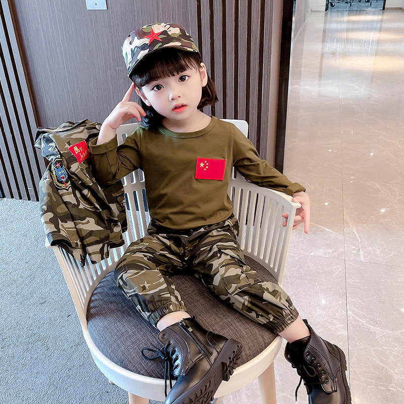 Children's camouflan suit special soldier girl spring clothing 2022 new military training boy baby spring fall three sets of foreign pie