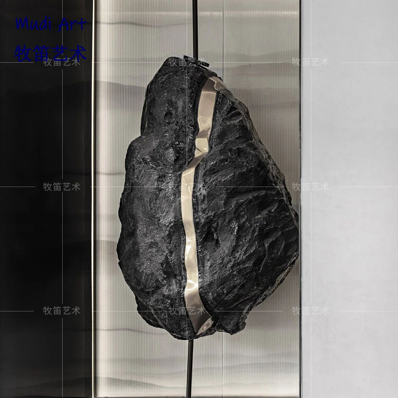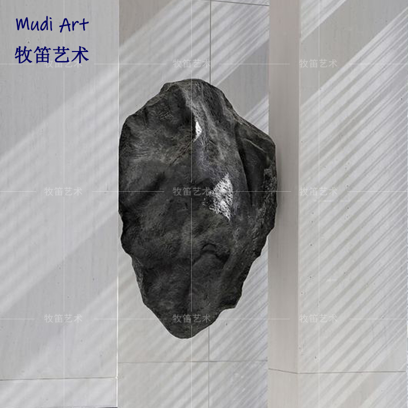 Abstract fiberglass black stone sculpture pendant sample house display center marketing center hall stairwell art ornament