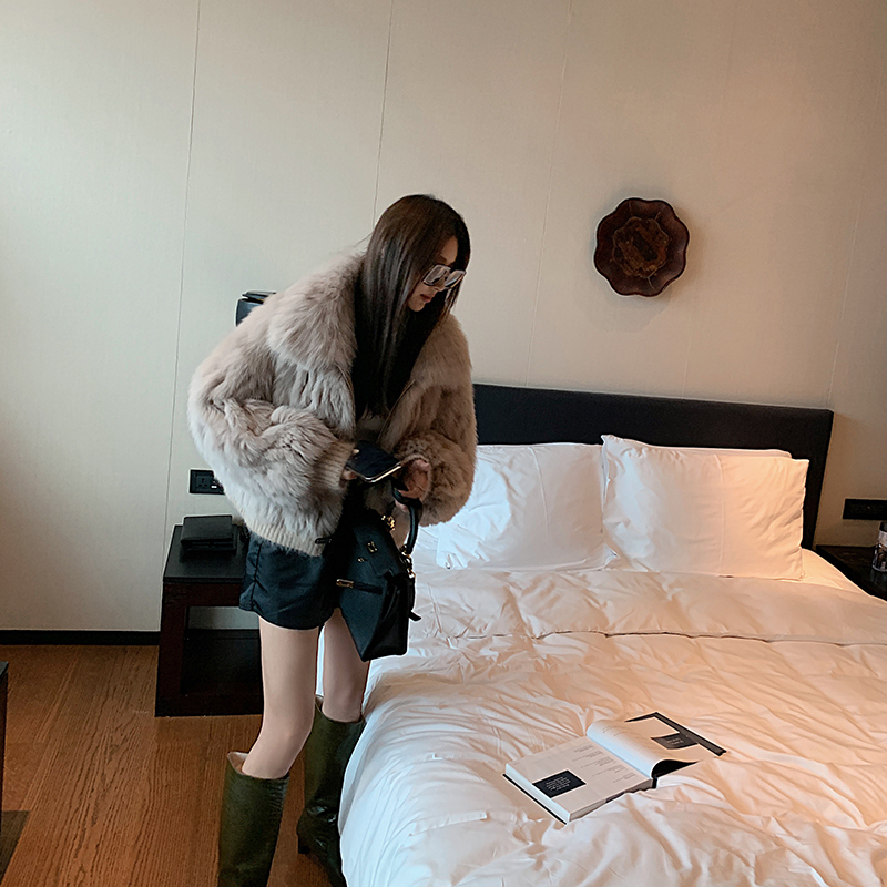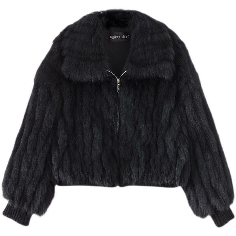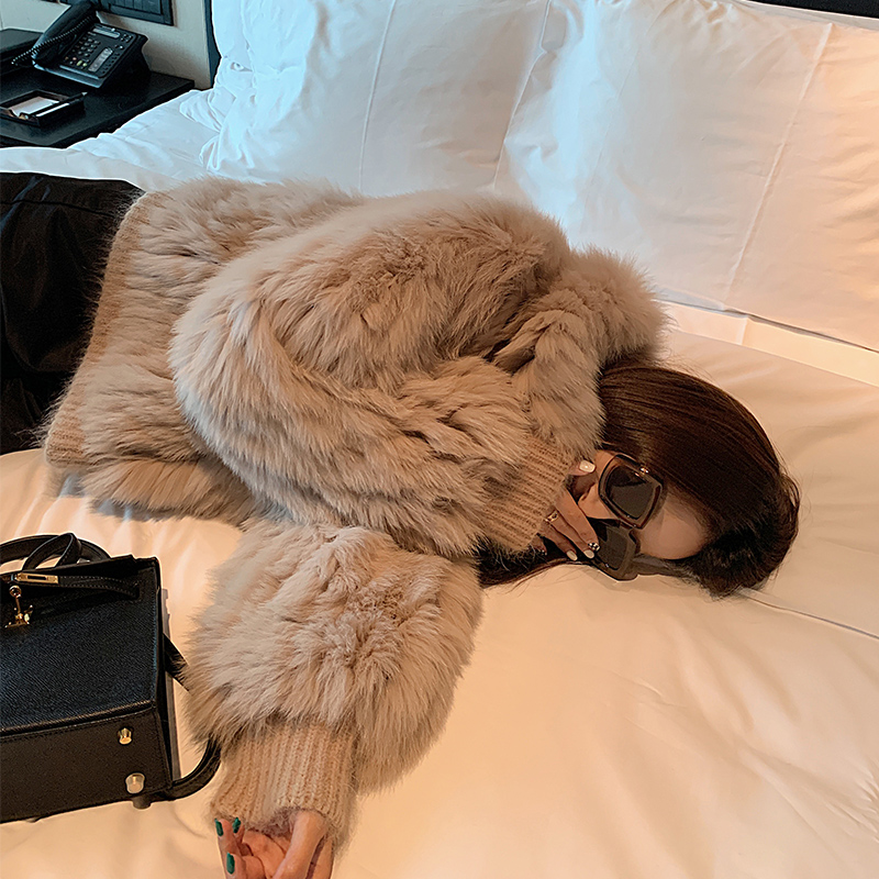 Jenny Fur "Black Qiao Ice Cream" Fox Fur Car Strip Young Fashion Fur Jacket Short Jacket Women's Winter