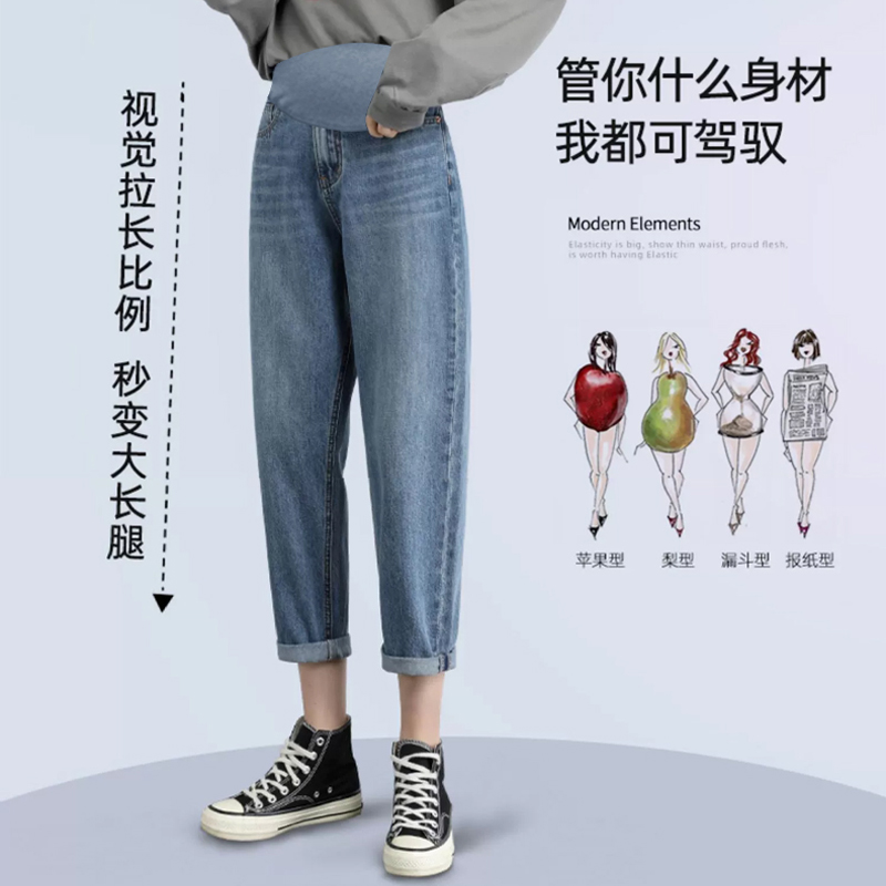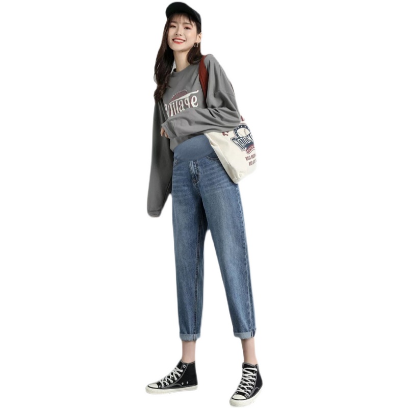 2022 new gush pregnant woman pants lady outside wearing autumn and winter loose casual child care pregnant woman old daddy jeans