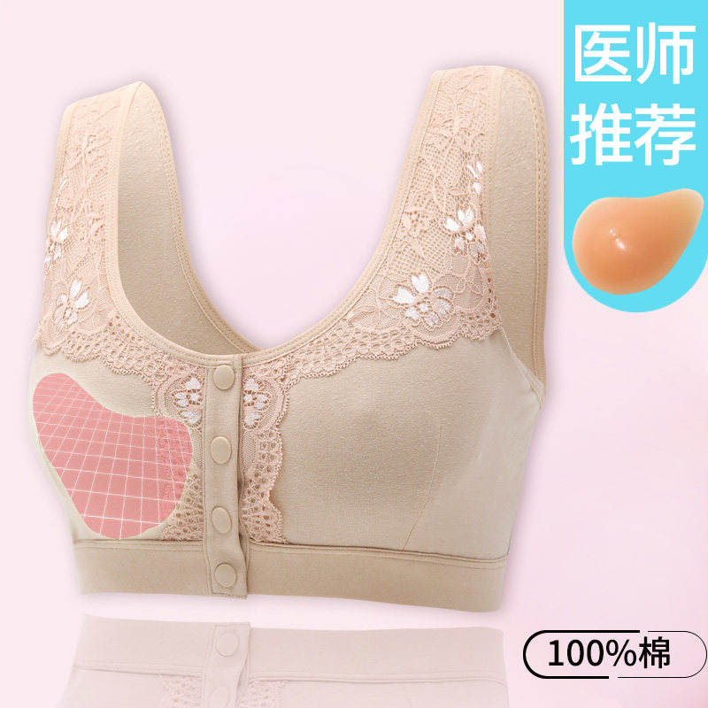 Exclusive Two-in-one Fake Chest Front Buttoned Silicone Vest Type Pure Cotton No Steel Ring Bra for Breast Bra Front Opening Surgery