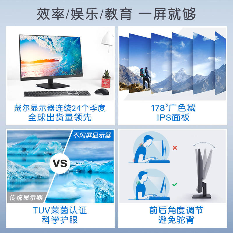 Dell Dell monitor desktop computer screen home 27 inch screen office display IPS HD LCD eye protection narrow bezel HD D2721H learning video game design