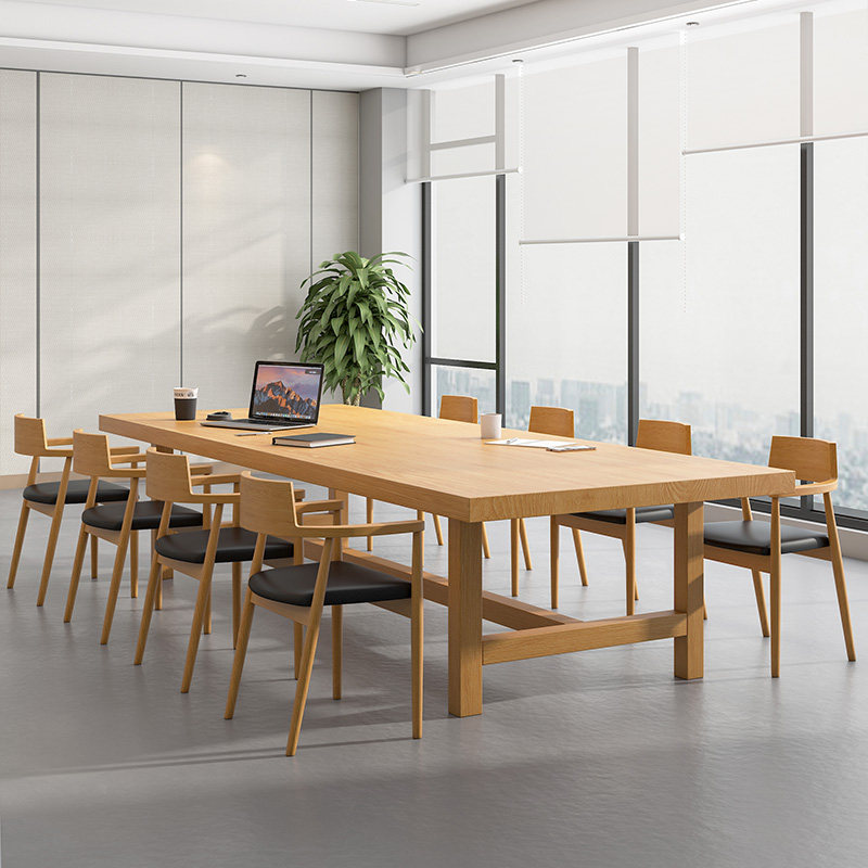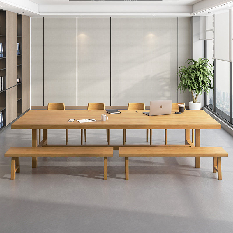 Solid wood conference table and chair combination simple modern rectangular office long table library workbench log large table