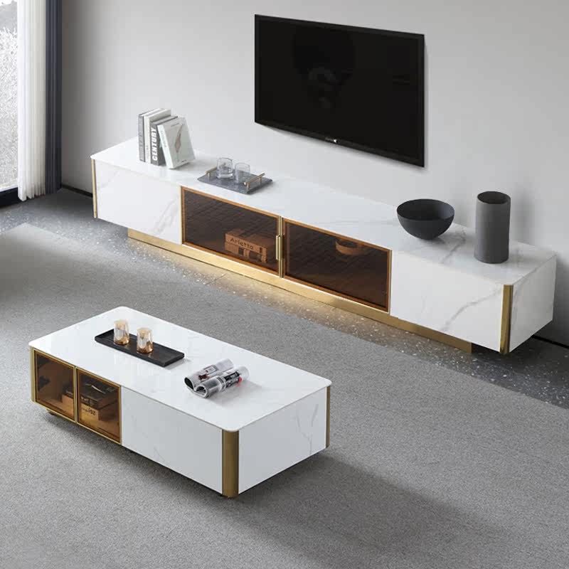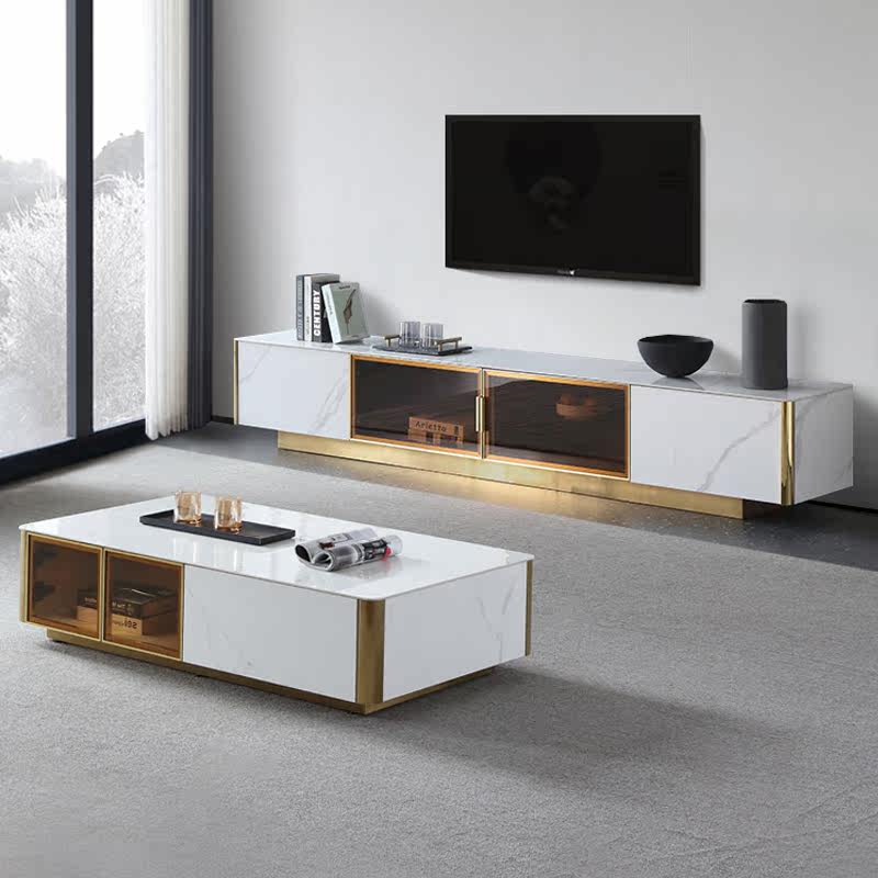 Italian light luxury bright slate TV cabinet coffee table combination Nordic living room glass door storage TV cabinet floor cabinet