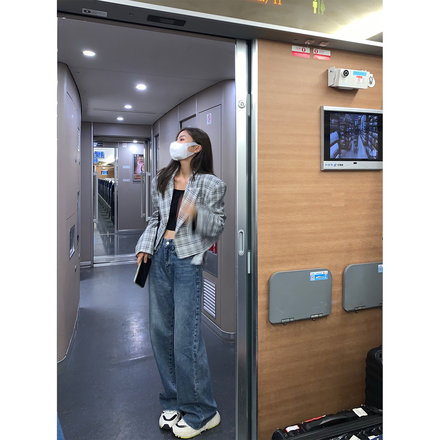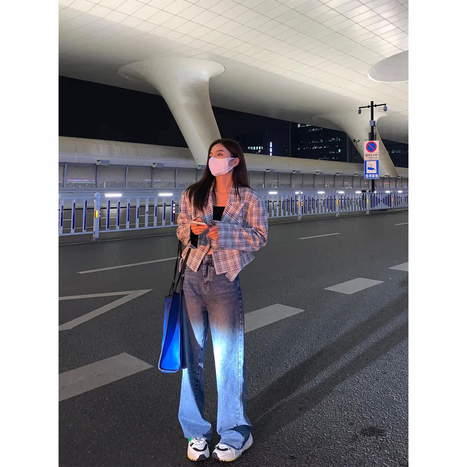 Chen Mifan Blue Straight Jeans Women's Autumn 2022 New Loose, Tall, Thin, High Waist Wide Pants