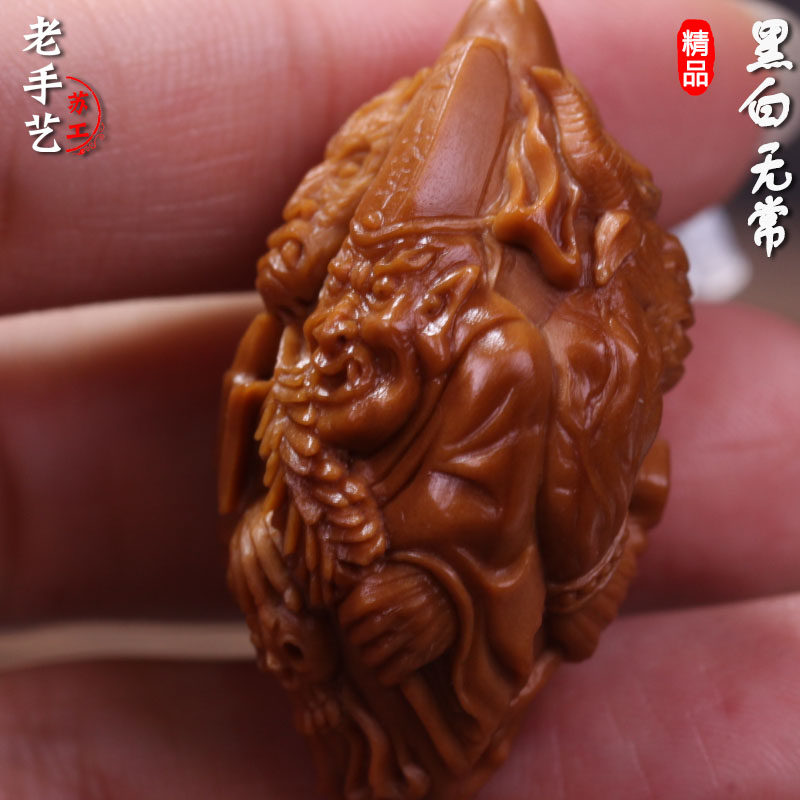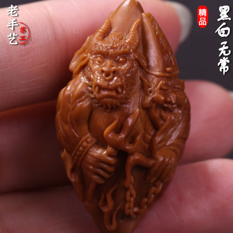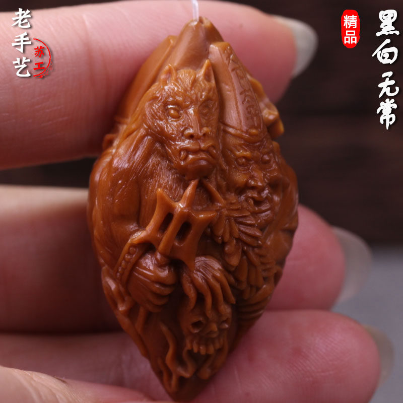 Su Artificial Zhoushan Black & White Impermanence Olive Core Engraving Single Seed Pure Hand Carved Ox Head Horse Face Olive Hu Pendant