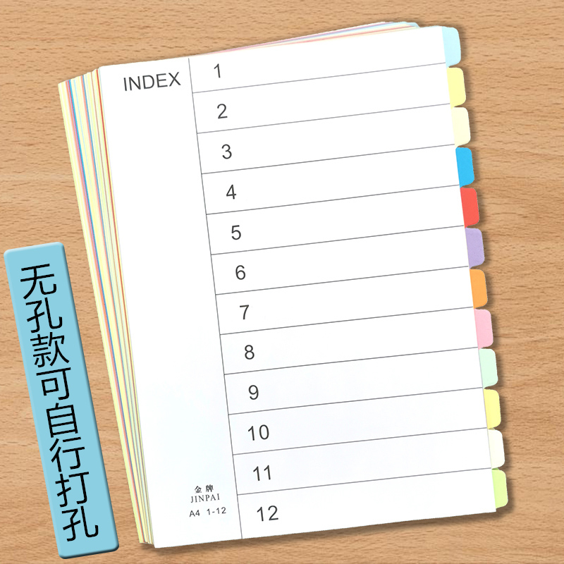 A4 paper color paginated paper 12 paginated without hole sorting paper blank index sepp page annual separation page-Taobao