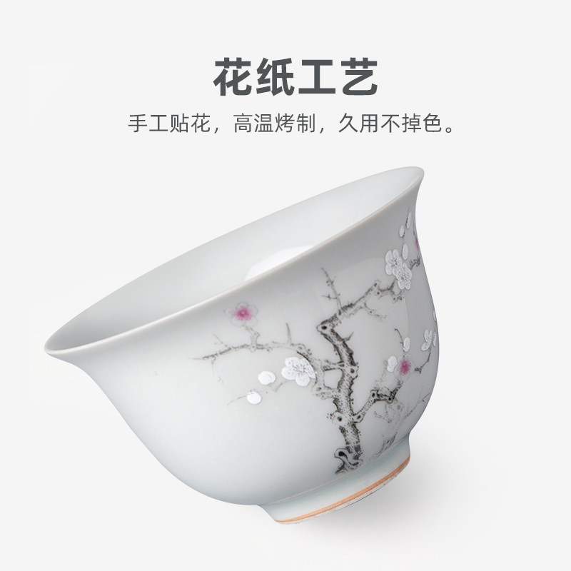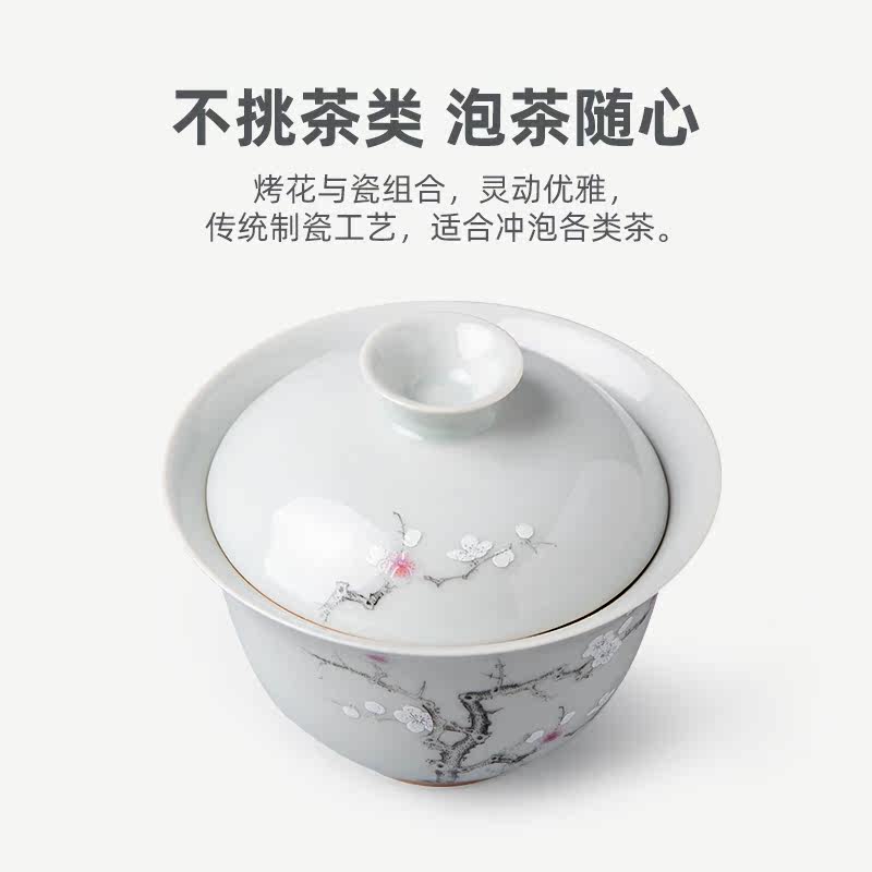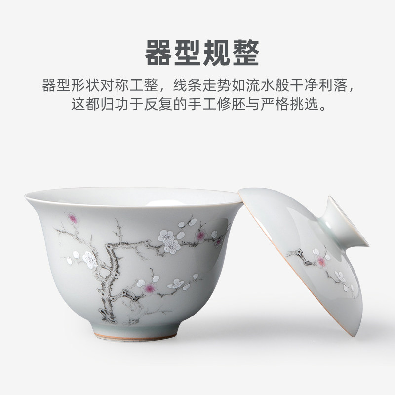Su Ming Ceramics "Ancient Green Ink Plum Fuling Covered Bowl" is not hot to the hand