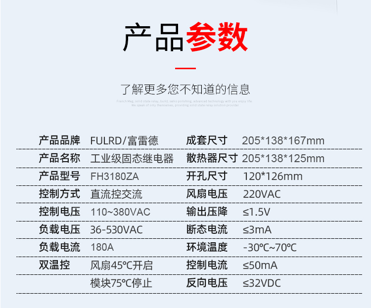 Fured Industrial Level Solid State Relay Kit 180A AA AC Control FH3180ZA electric heating ssr
