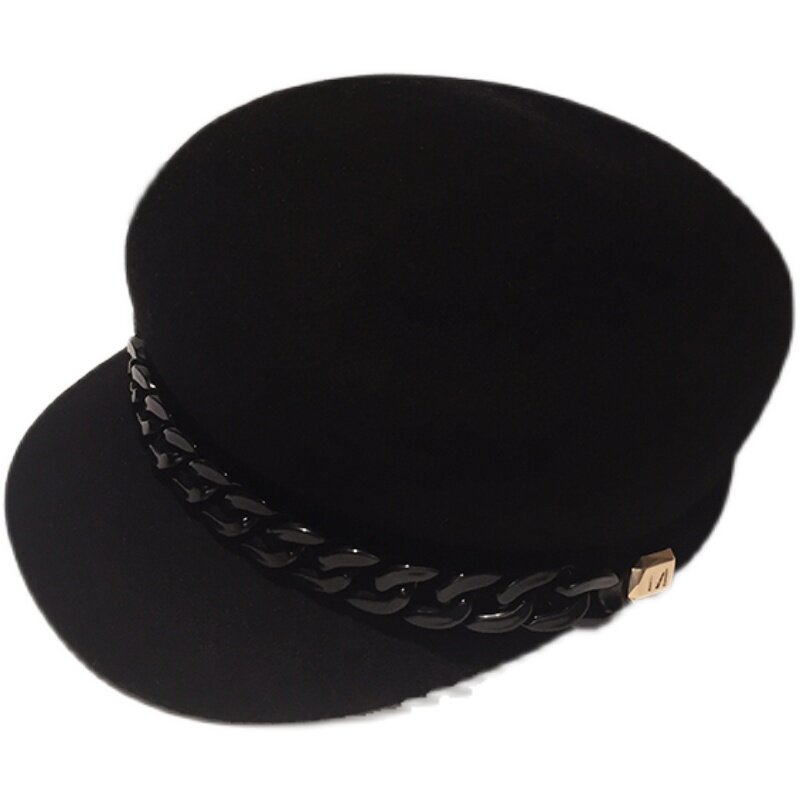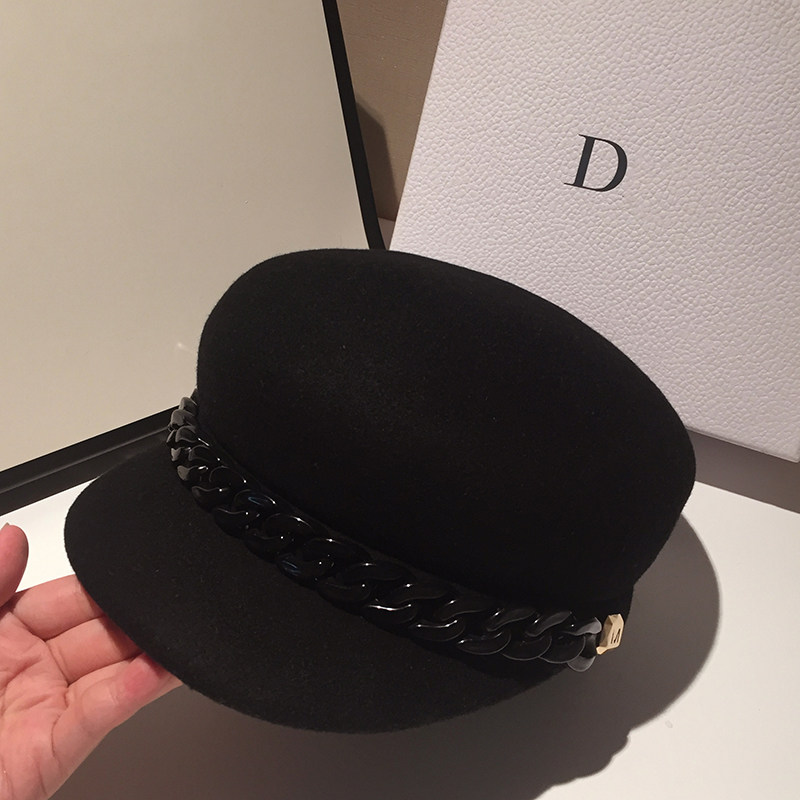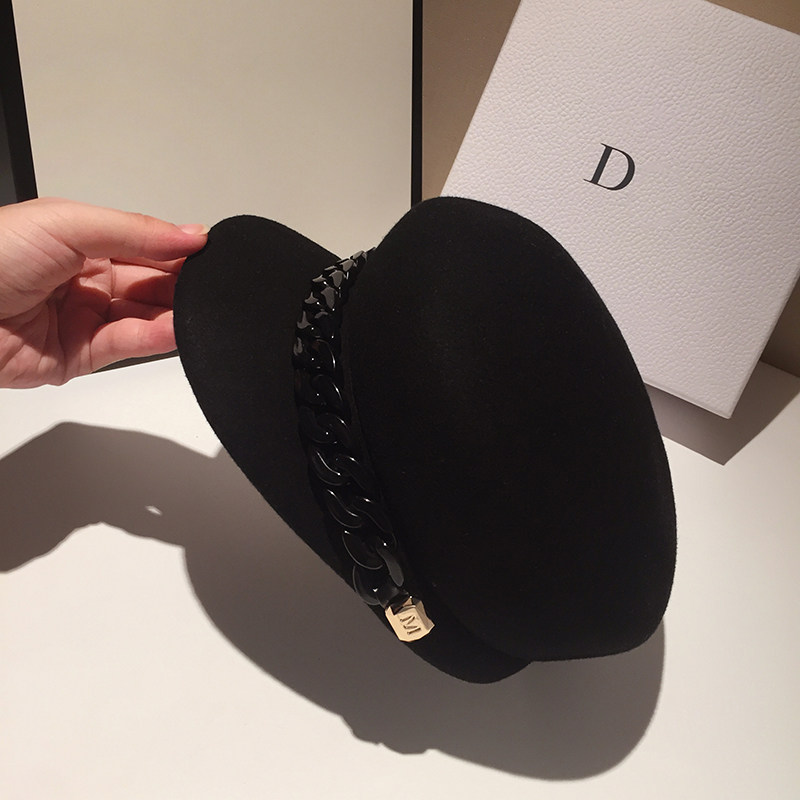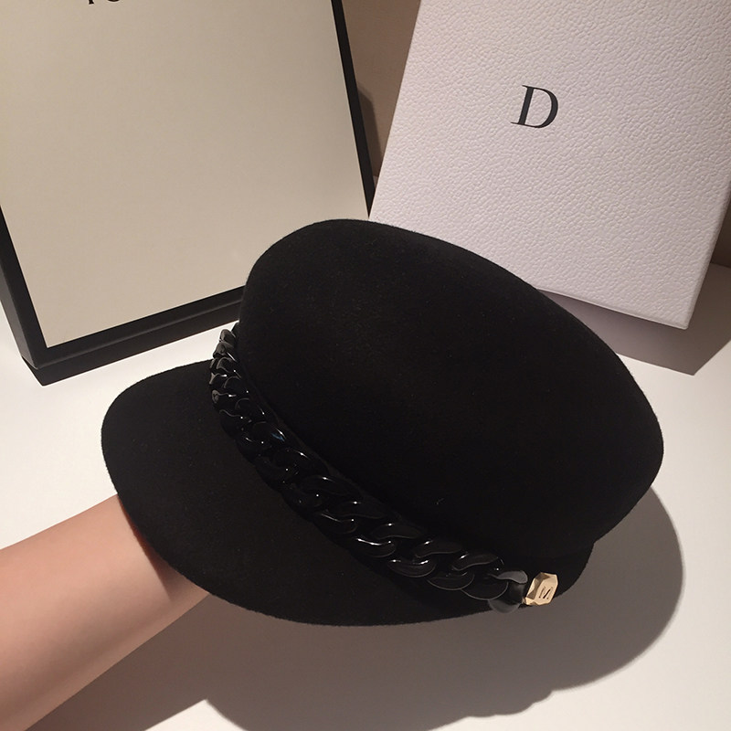 High end wool, little fragrant wind Reguberre navy hat Inlenise star anise hat women casual newspaper hat-hat tide