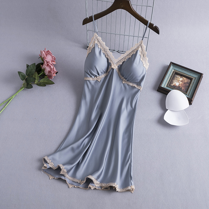Mulberry Silk Sexy Harness Sleeping Dress Woman True Silk Thin with chest cushion Sleeping Lace Fire Spicy Seductive Silk Home Clothing