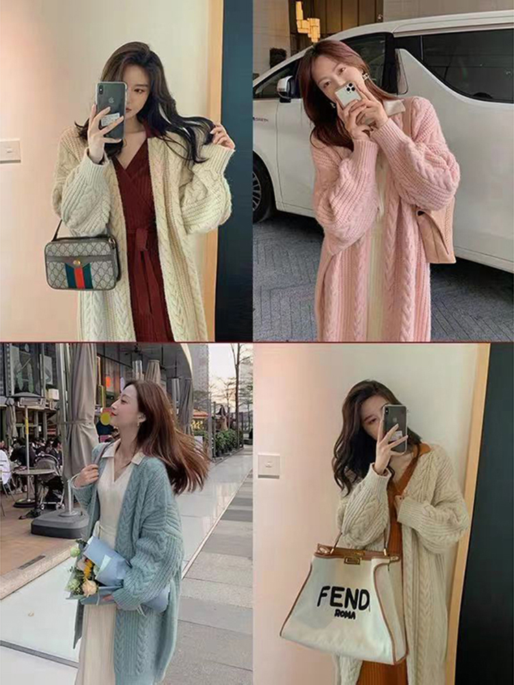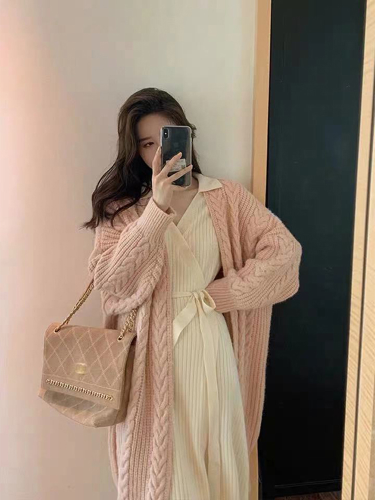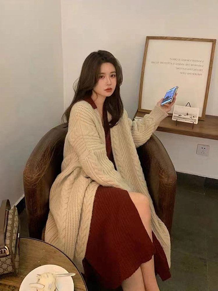 Medium-long-style sweater cardio-hoodie jacket woman 2021 autumn winter new Korean version loose outside wearing a lazy wind net red needle weasel-knit-Taobao