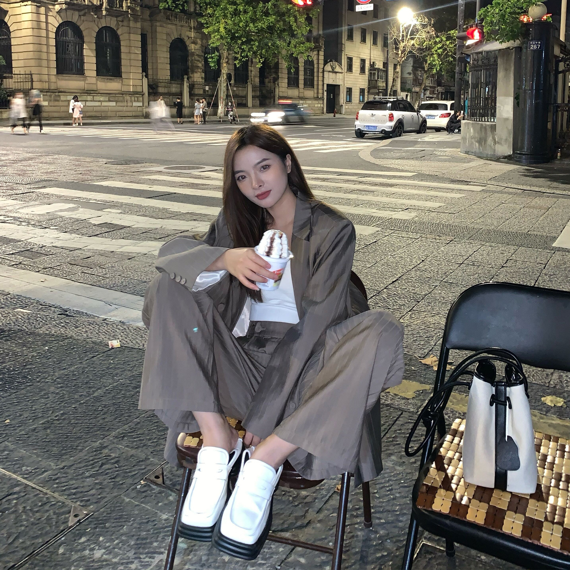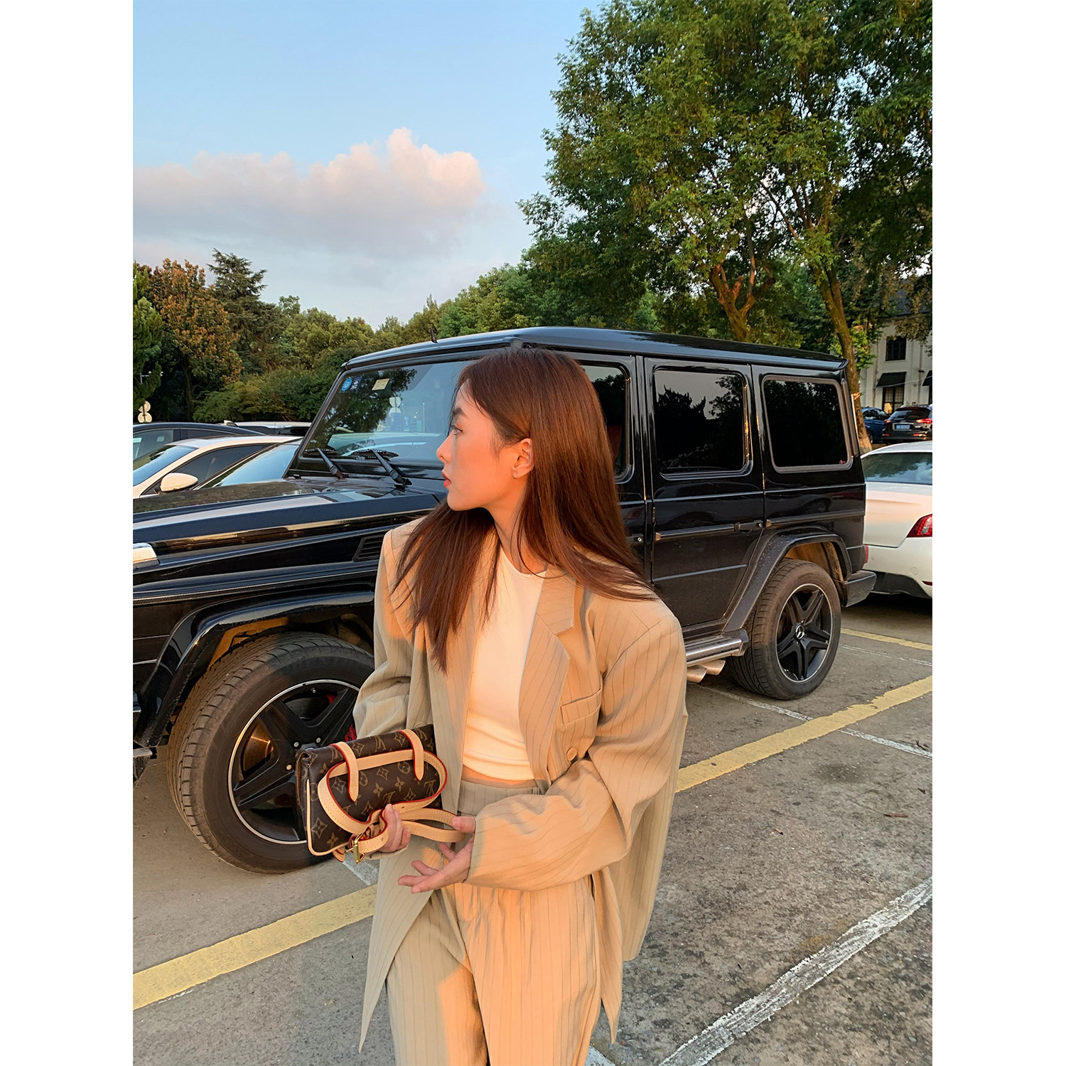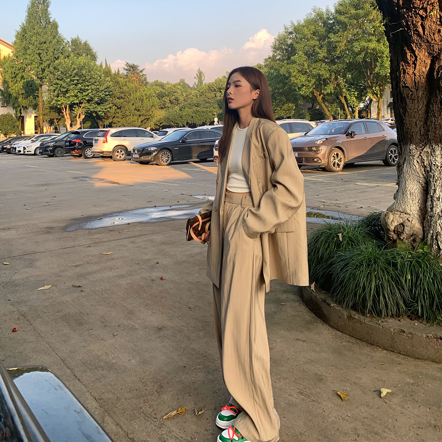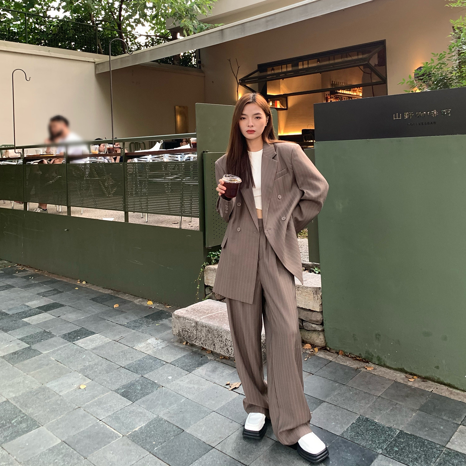 Chen Mifan striped suit jacket suit women's autumn high-rise suit high-waist loose wide-leg pants two-piece suit