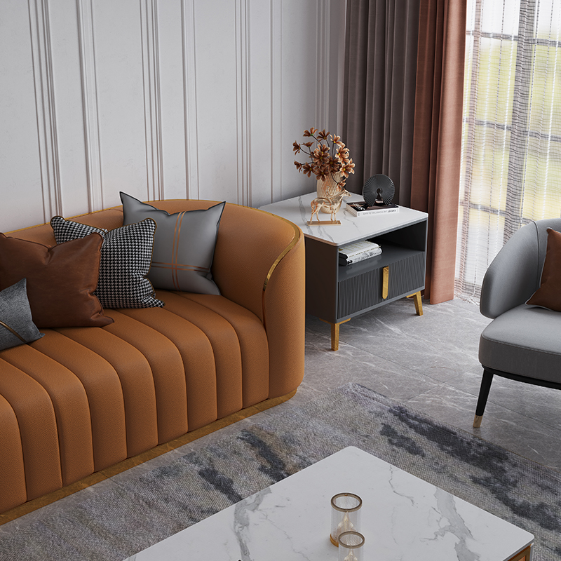 Light luxury rock plate edge of modern minimal household sofa side cabinet large square tea few living room small tea few marble corner several