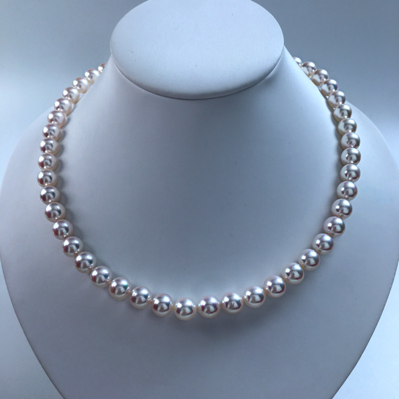 Sky lady class Japan Akoya sea water pearl necklace 8-8 5mm white overdraft powder positive round bright mother to give elders