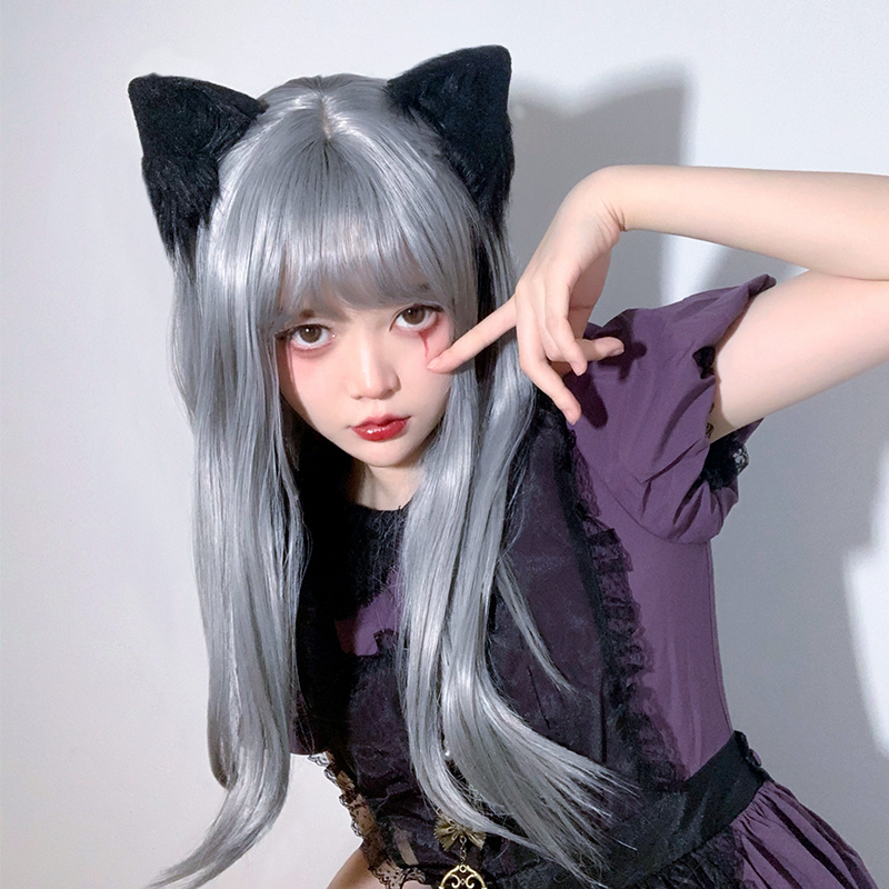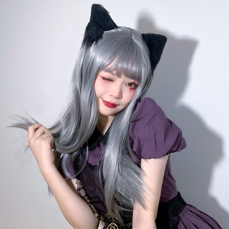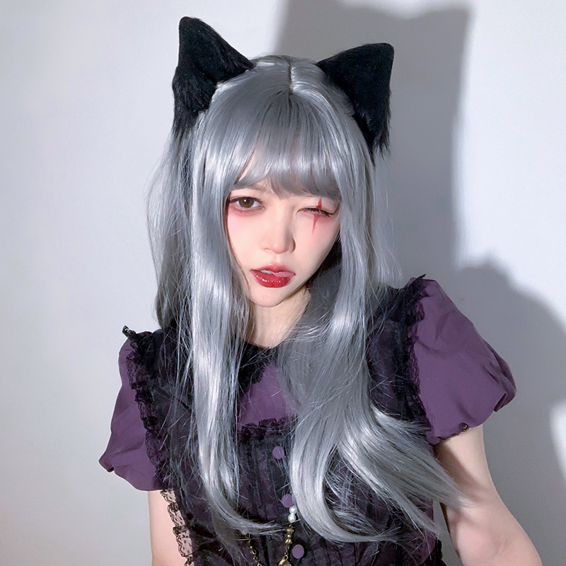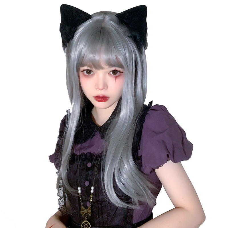 Wig Women long hair All headgear Summer emulation Natural air Liuhai Long straight hair net red Grandmother Grey medium long wig cover