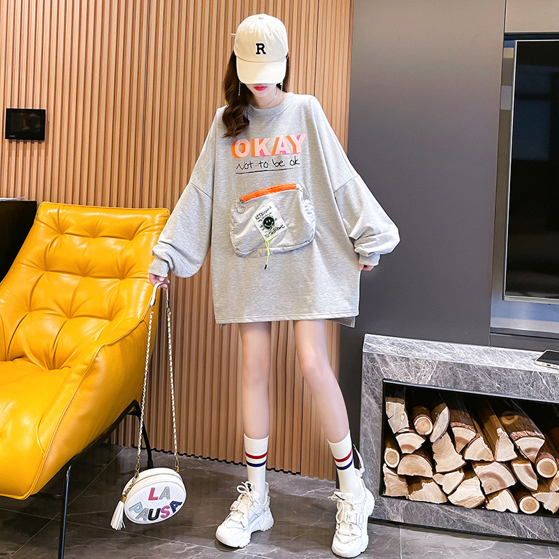 2021 Pregnant women dress new Han edition fashion loose collar pocket printing in large size women's clothes