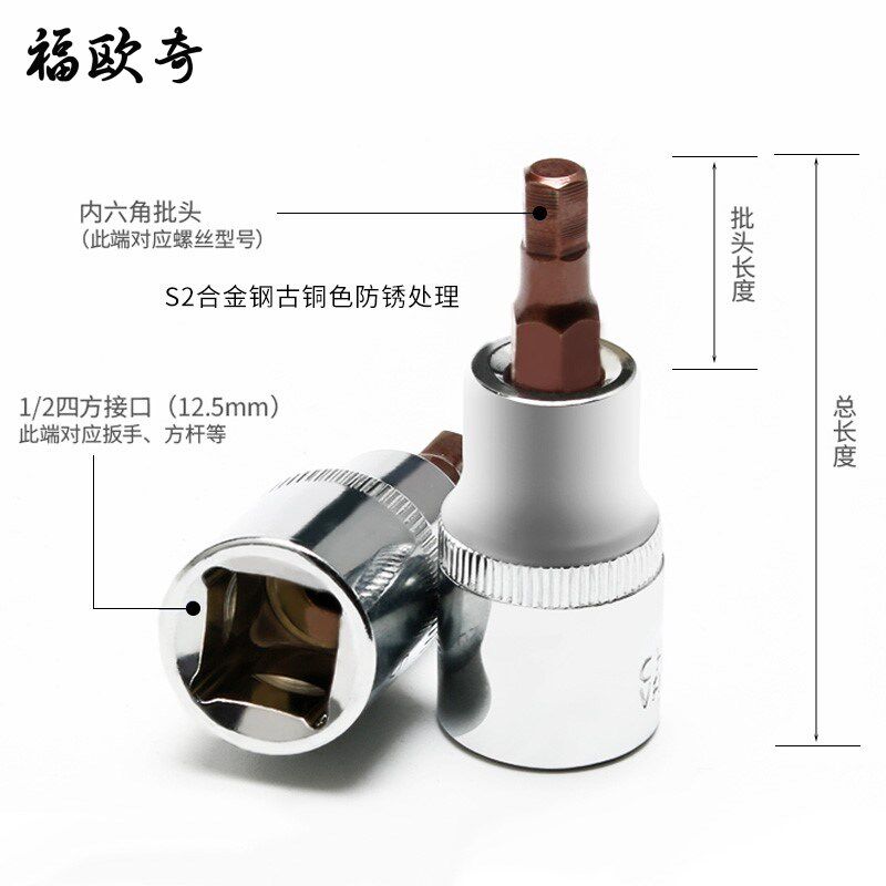 Inner hexagonal sleeve head suit combined inner 6 angle knife S2 lengthened 1 2 electric screwup sleeve screwdriver head wrench
