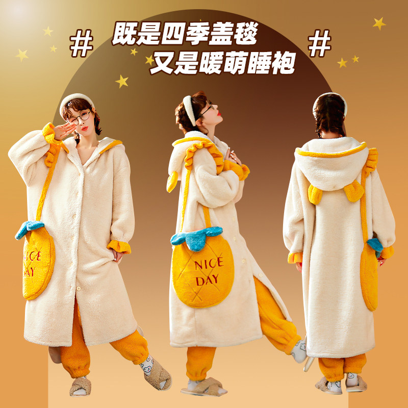 Sleepwear Woman Autumn Winter Coral Suede Thickened gush sleeping robe Long version bathrobe can be worn out of winter Home Two sets