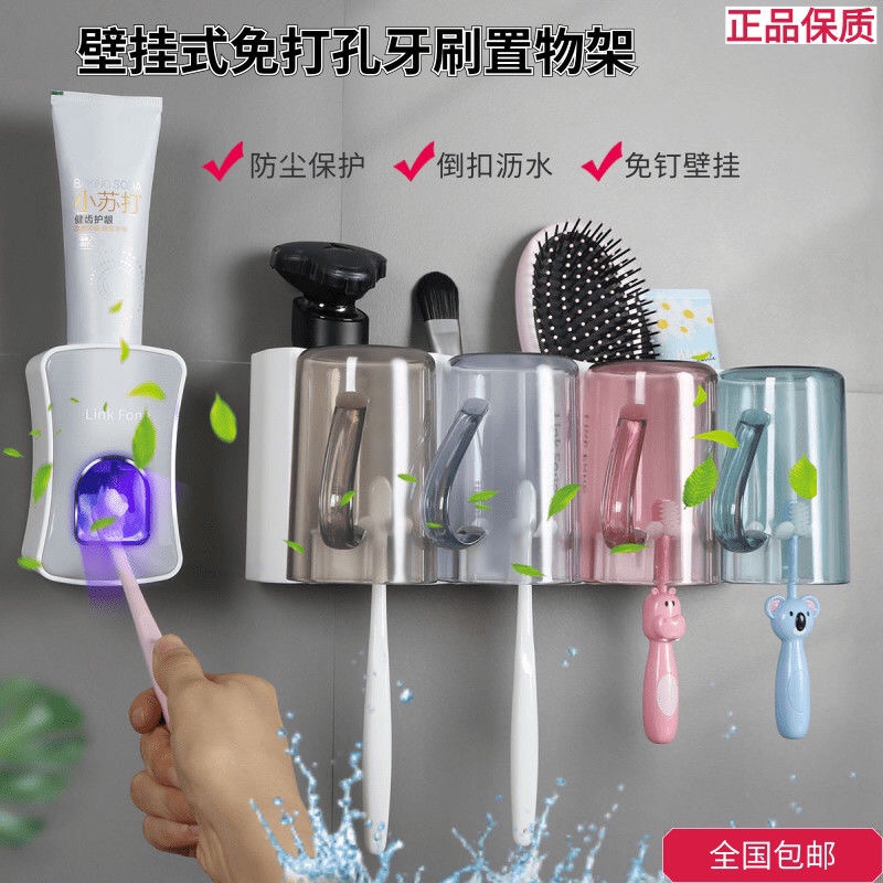 Toothbrush Shelf Wall-mounted Wall-Free Intake Box Electric Squeeze Toothpaste With Couple Wash Suit Inverted Drain