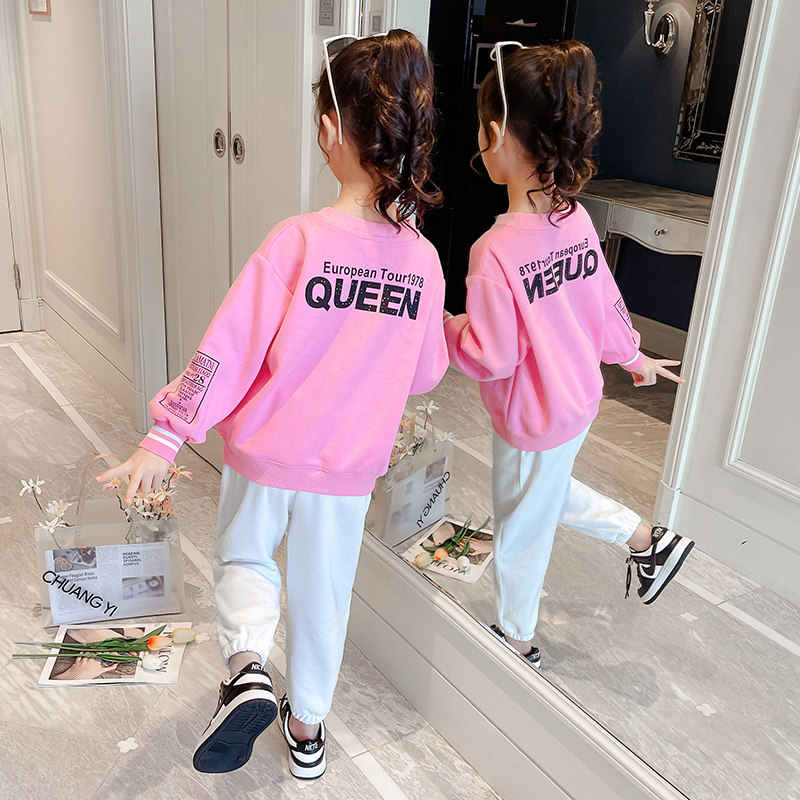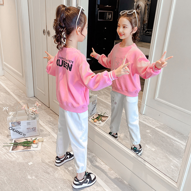 Girl Autumn Clothing Clothing Suit New Korean Version Cartoon Long Sleeve Children Suit Nets Red Girl Spring Autumn Sports Two Suits