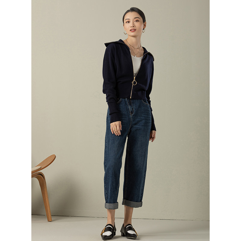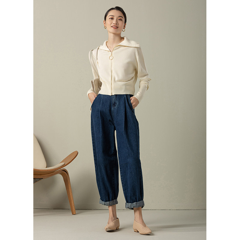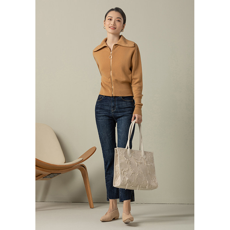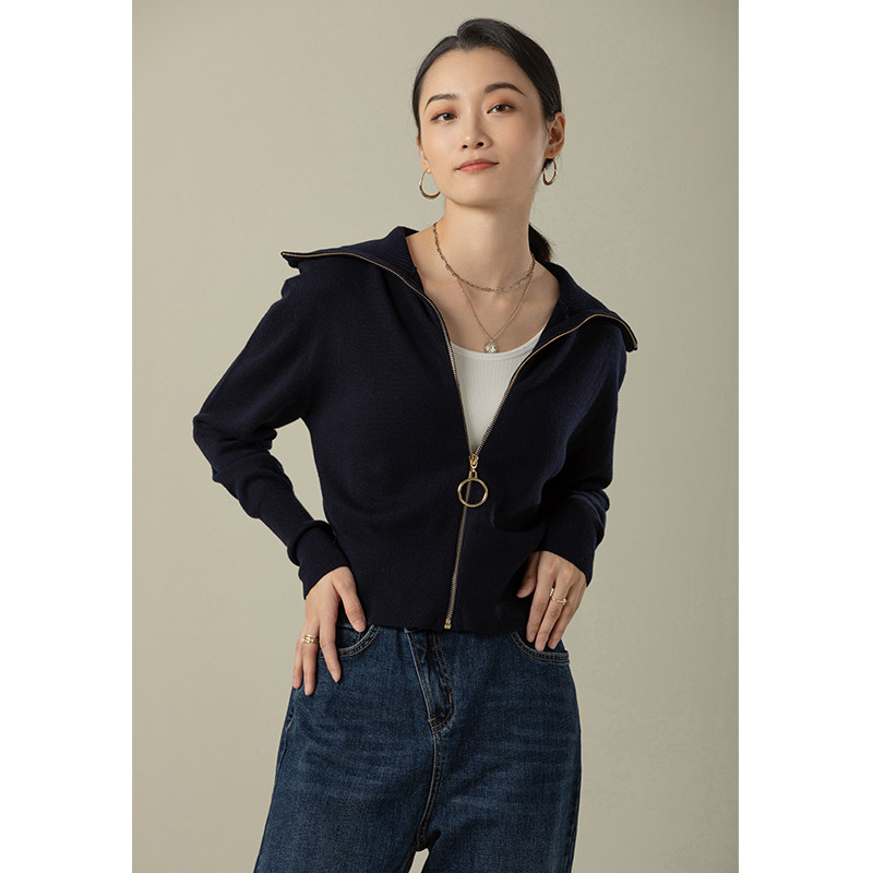 GDZY spring new lapel white zipper knitted cardigan top women's outer jacket women's French loose sweater